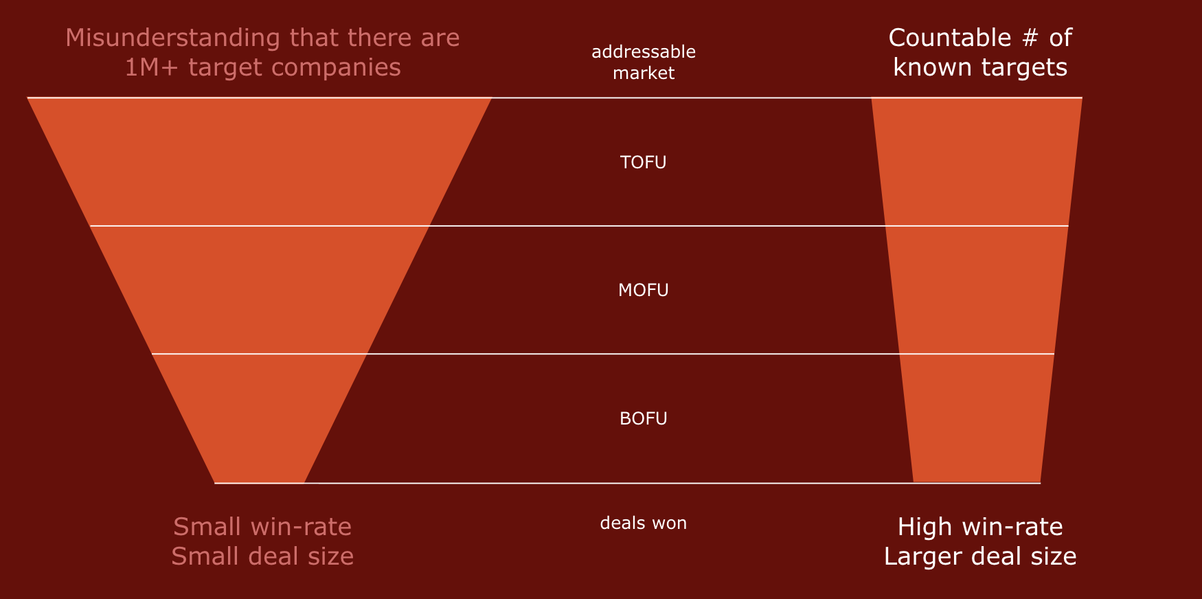 A realistic understanding of the size of your addressable market should drive your entire go-to-market strategy through The Tube instead. In short, by recognizing the small volume of potential buyers at the top, The Tube should hone your market and sales efforts by: